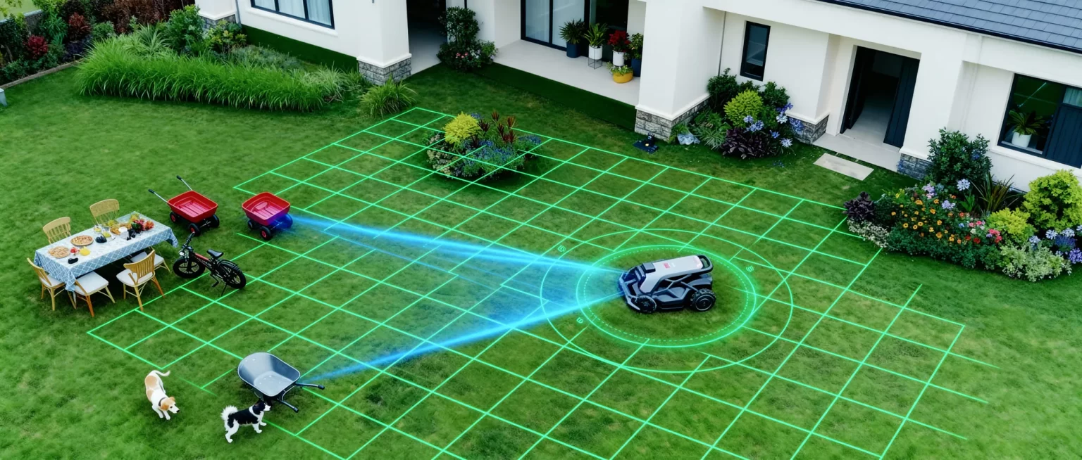 Viedie redzes sensori reāllaikā atpazīst mājdzīvniekus, rotaļlietas un negaidītas kustības, nodrošinot drošu, saudzīgu un netraucētu pļaušanu ap jūsu pūkainajiem ģimenes locekļiem.